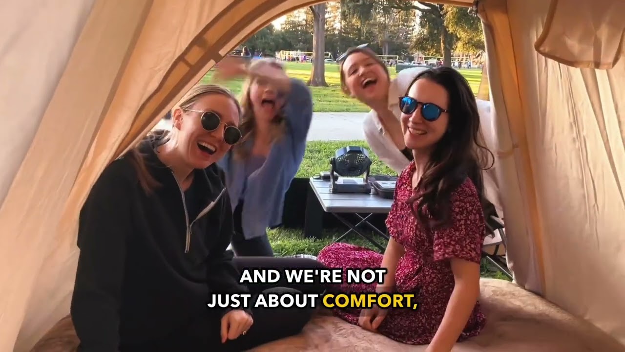 Loading image: Luxury festival tent rentals with cozy beds, chairs, and luggage by Best in Tents.